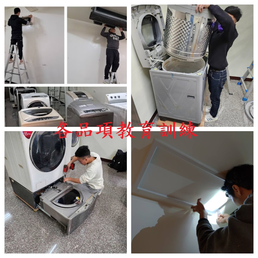 ►自結業日起算,皆會密集安排免費再學習跟跑及測試,結業後學員可無限期跟跑學習,跟跑及測驗內容包含:各式冷氣拆裝洗、各式洗衣機拆裝洗、各式作業流程及服務規範。